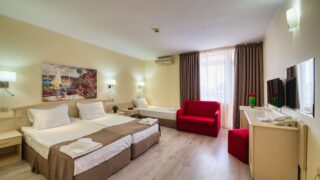 Hotel Detelina w Złotych Piaskach położony jest w spokojnej, zielonej części kurortu, otoczony rozległym ogrodem. Niedaleka, szeroka plaża Morza Czarnego oraz ciche otoczenie sprawiają, że to idealne miejsce na wakacyjny wypoczynek dla młodzieży. Na terenie hotelu znajduje się duży zewnętrzny basen z wydzielonym brodzikiem, otoczony leżakami i parasolami. Do dyspozycji jest także przestronny teren rekreacyjny idealny do gier zespołowych i zabaw integracyjnych.