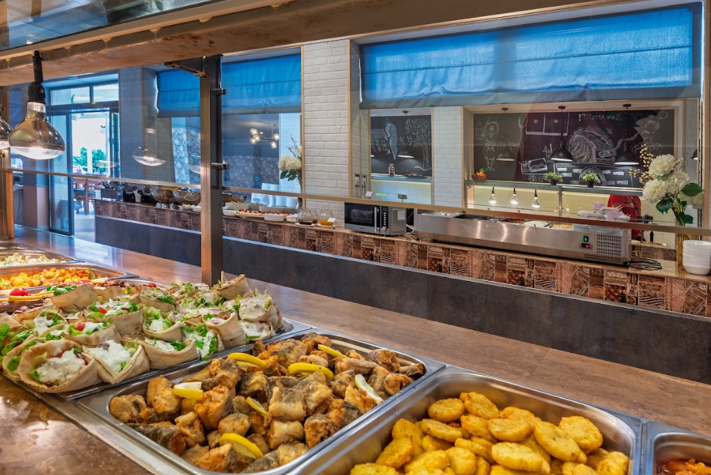 Kolacja: 18:00 – 20:00 w formie bufetu w restauracji głównej lub na tarasie. Bufet obejmuje różnorodne dania na ciepło i zimno, różnorodne produkty mleczne, owoce sezonowe, bogaty wybór dań kuchni bułgarskiej i międzynarodowej oraz wodę mineralną i napoje.