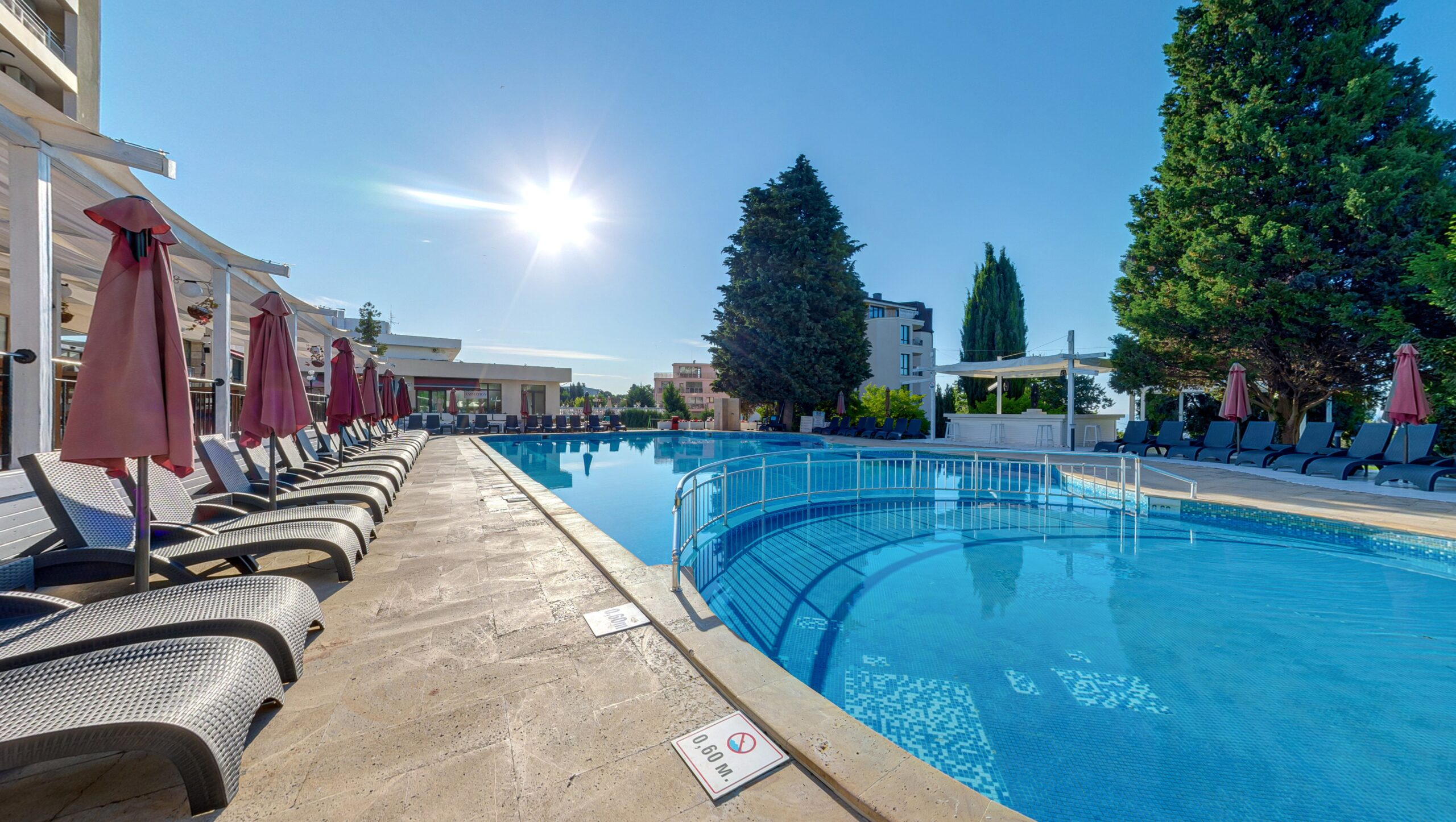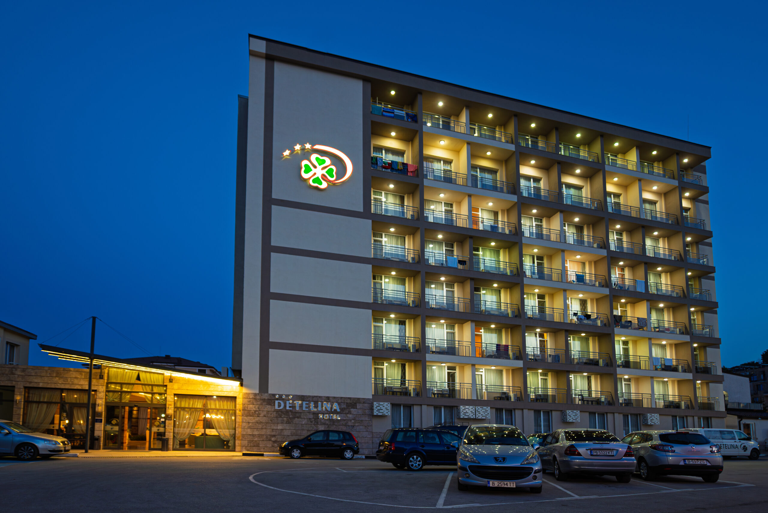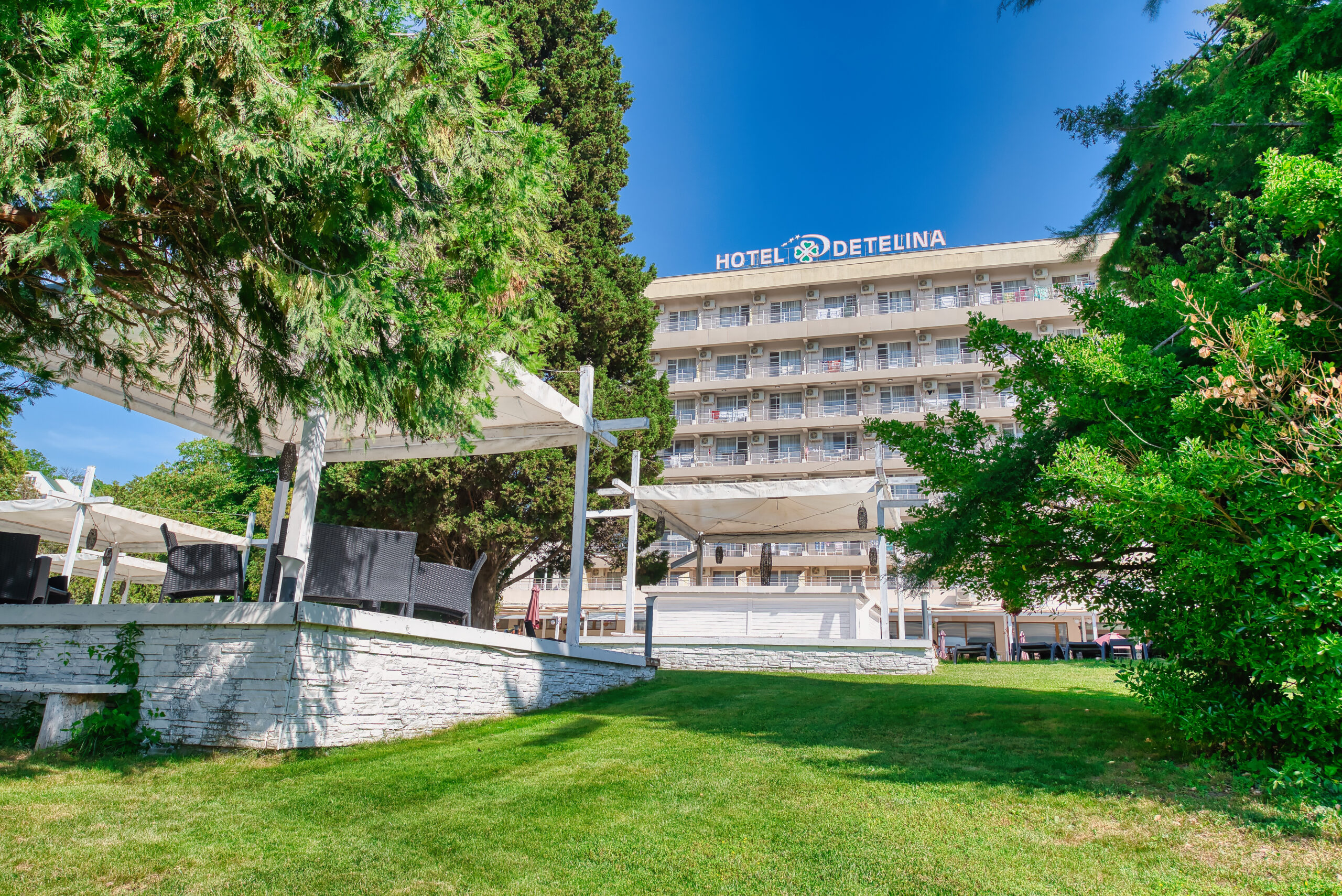 Hotel Detelina w Złotych Piaskach położony jest w spokojnej, zielonej części kurortu, otoczony rozległym ogrodem. Niedaleka, szeroka plaża Morza Czarnego oraz ciche otoczenie sprawiają, że to idealne miejsce na wakacyjny wypoczynek dla młodzieży. Na terenie hotelu znajduje się duży zewnętrzny basen z wydzielonym brodzikiem, otoczony leżakami i parasolami. Do dyspozycji jest także przestronny teren rekreacyjny idealny do gier zespołowych i zabaw integracyjnych.