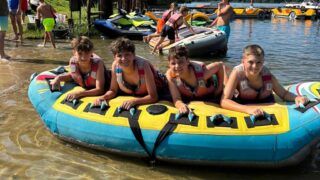 - Ekscytujące przygody: Od kąpieli w czystym jeziorze, przez dynamiczne strzelanki „Laser Tag”, po ekscytujące zabawy na kajakach bezburtowych oraz jazdy za motorówką na bananie, kołach lub kanapach – każdy dzień to nowa przygoda.