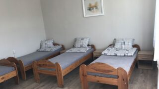 6 noclegów w pokojach 2 – 3 osobowych, w domkach 4 osobowych z pełnym węzłem sanitarnym