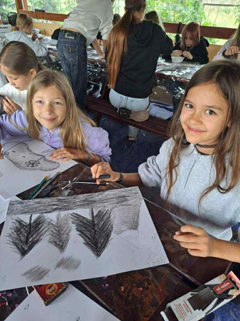 Podczas obozu uczestnicy obozu rozwijają swoje talenty poprzez różnorodne warsztaty plastyczne — rysunek, malarstwo, prace manualne i eksperymenty z różnymi technikami. Twórcza praca przeplata się z inspirującym kontaktem z naturą, która pobudza wyobraźnię i zachęca do artystycznych poszukiwań.