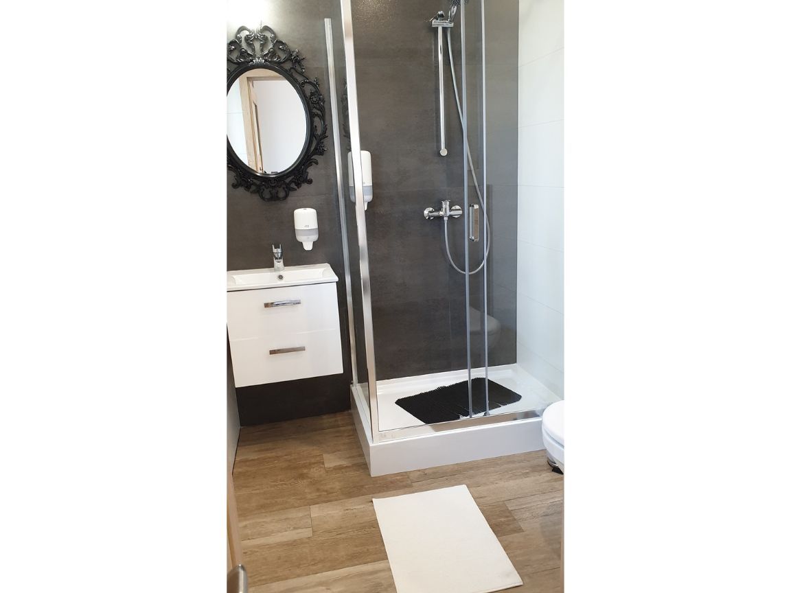 6 noclegów w pokojach 2 – 4 osobowych z pełnym węzłem sanitarnym .