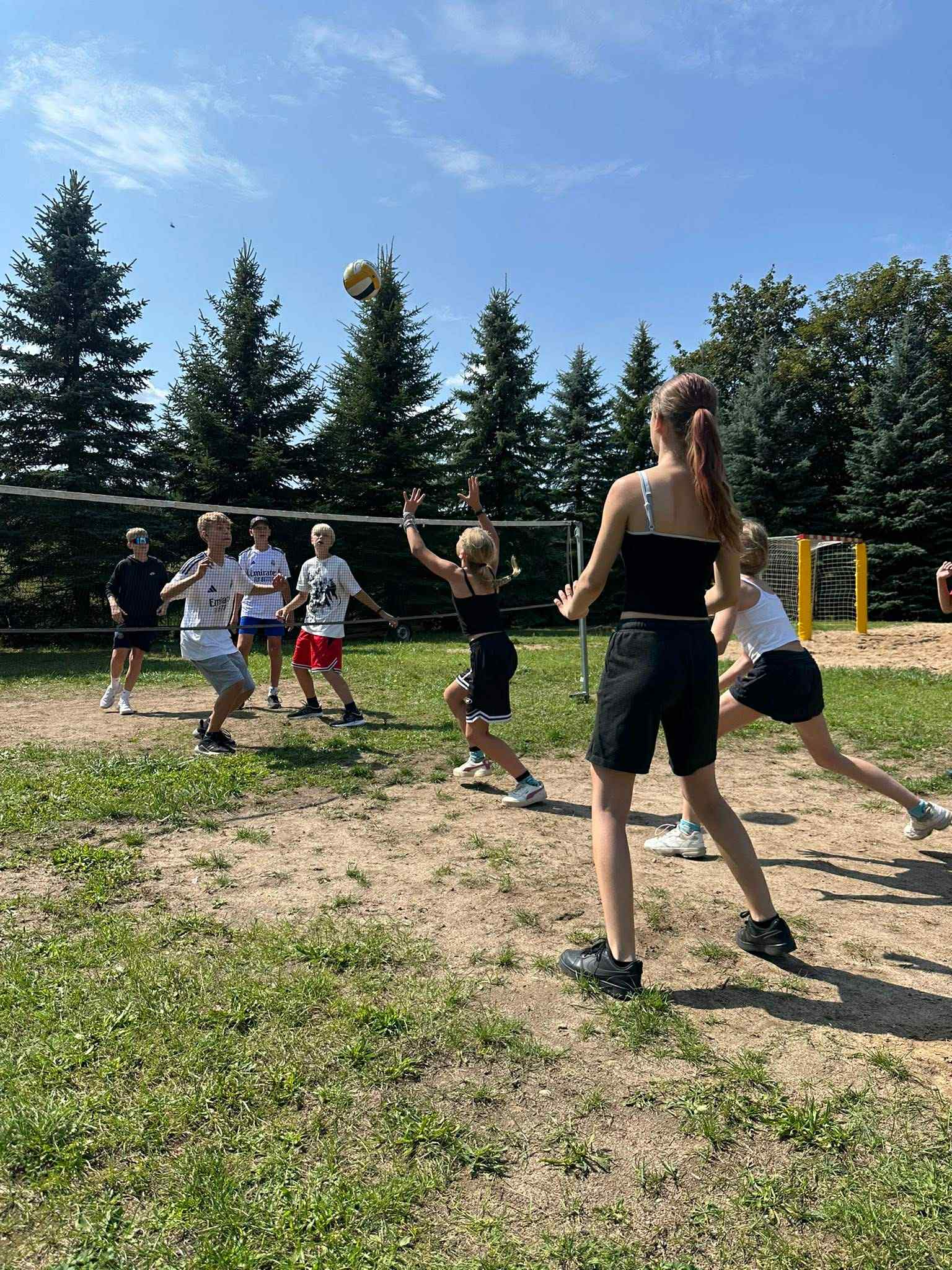 - Zabawy i gry integracyjne: Ślimak, teambuilding, gry terenowe, różnorodne gry zespołowe takie jak piłka nożna, siatkówka czy speedbadminton, które budują ducha zespołu i uczą zdrowej rywalizacji.