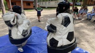 - Gry zespołowe i sporty: Tenis, piłka nożna, siatkówka, kszykówka, speedbadminton oraz zawody strzelania z łuku i wiatrówki dla chętnych.